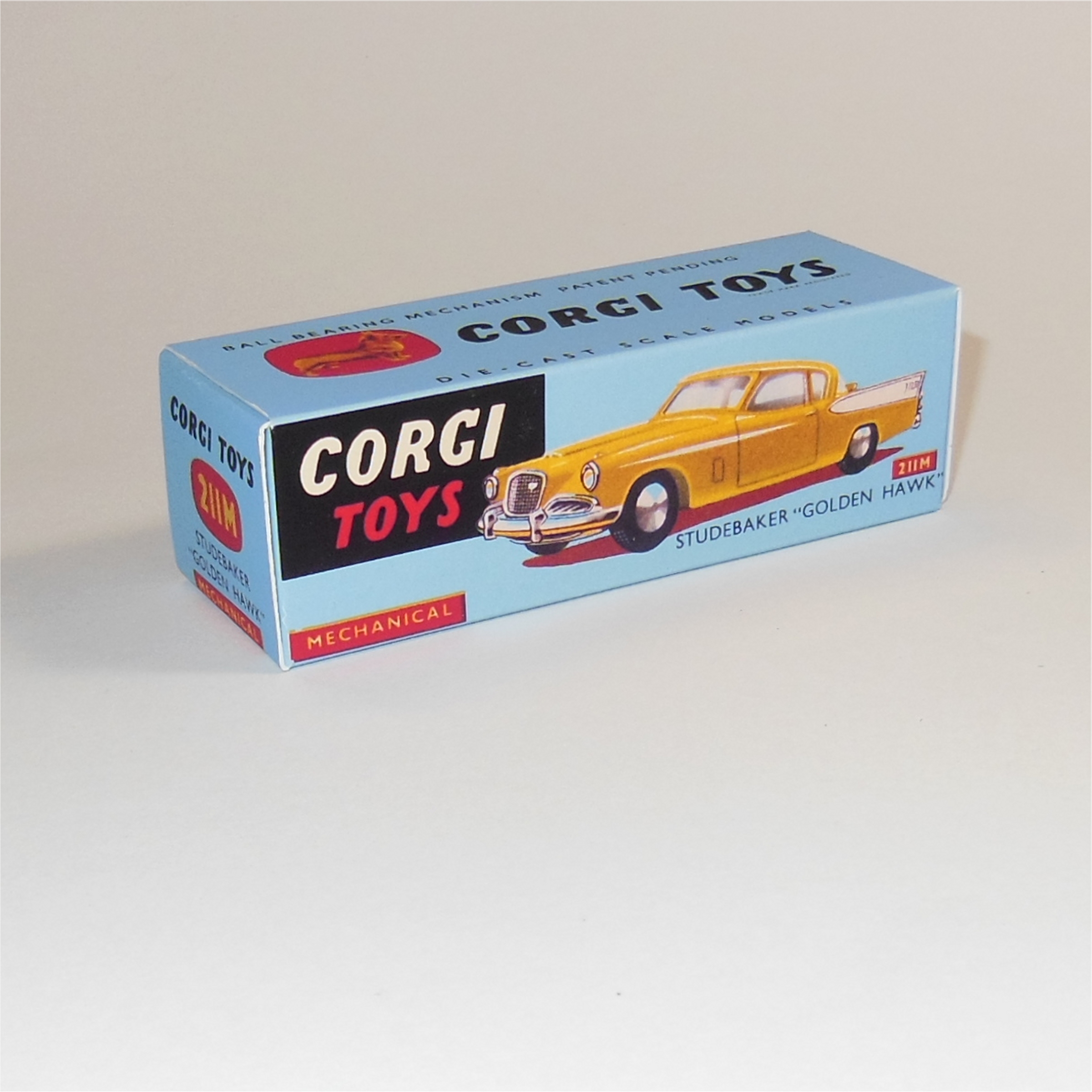 A reproduction replacement empty Corgi Toys 211M Studebaker Golden Hawk Mechanical Repro Box.