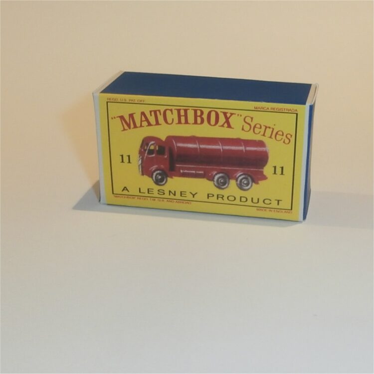 An empty reproduction Matchbox Lesney 11 b Esso Tanker Empty D Style Repro Box.