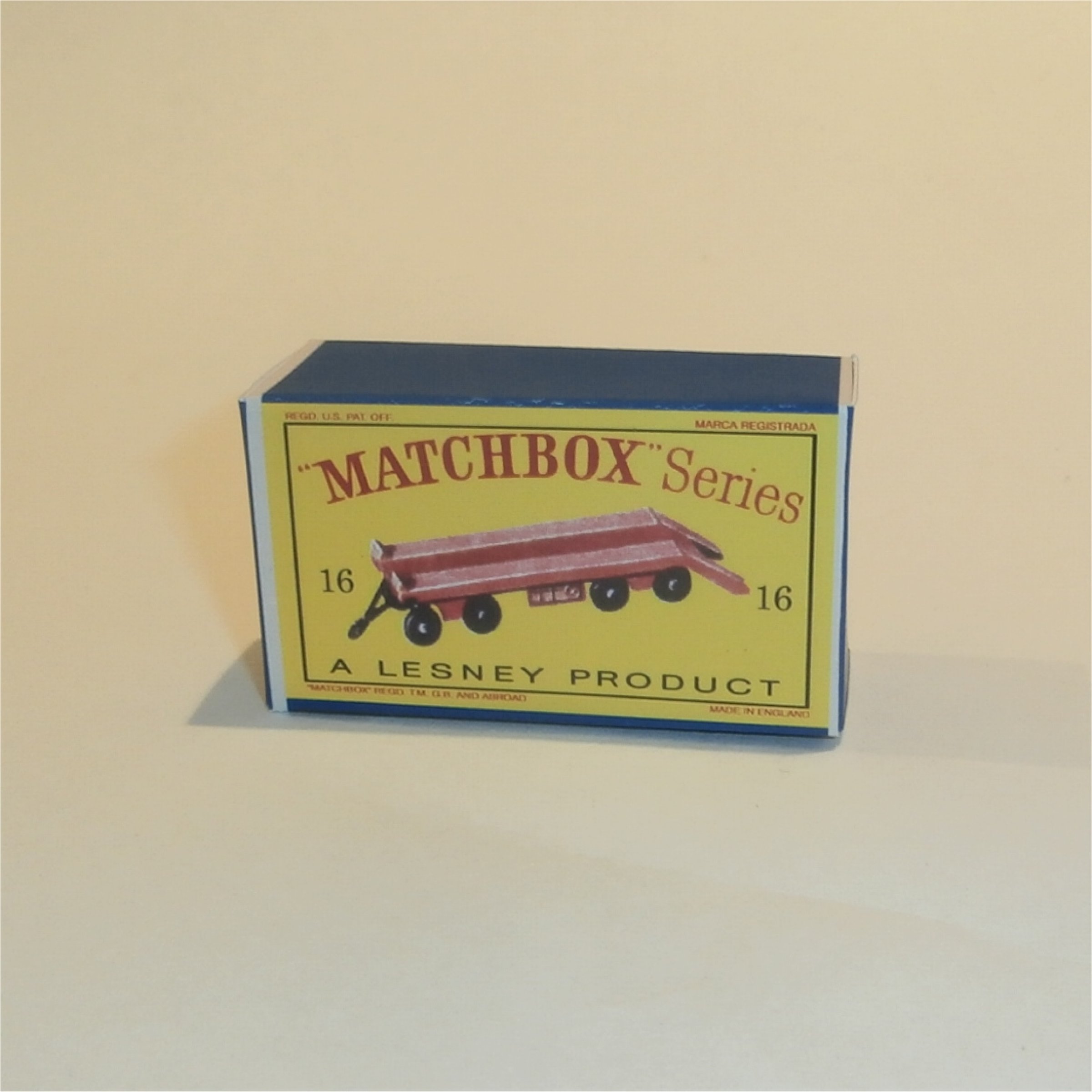 An empty reproduction Matchbox Lesney 16 b Atlantic Trailer Empty D Style Repro Box.