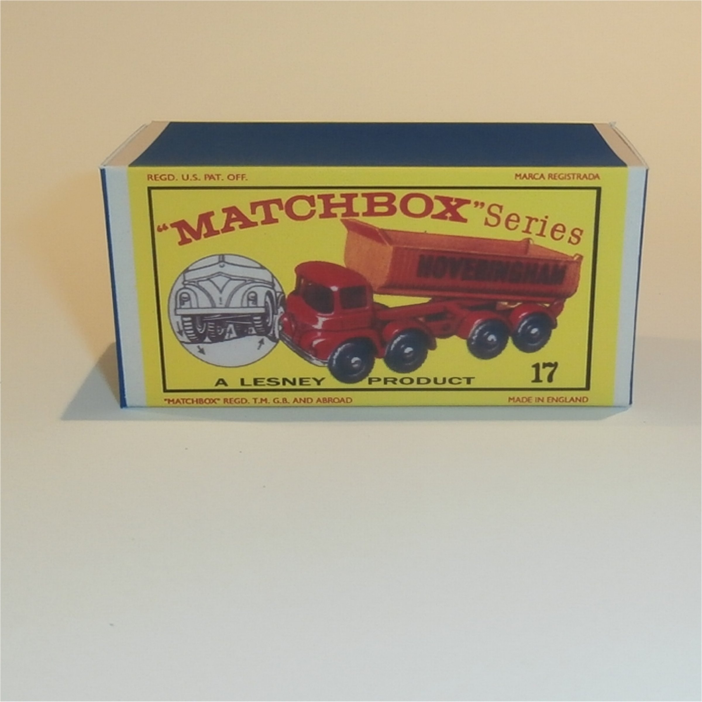 An empty reproduction Matchbox Lesney 17d Hoveringham Tipper Truck Empty D Style Repro Box.