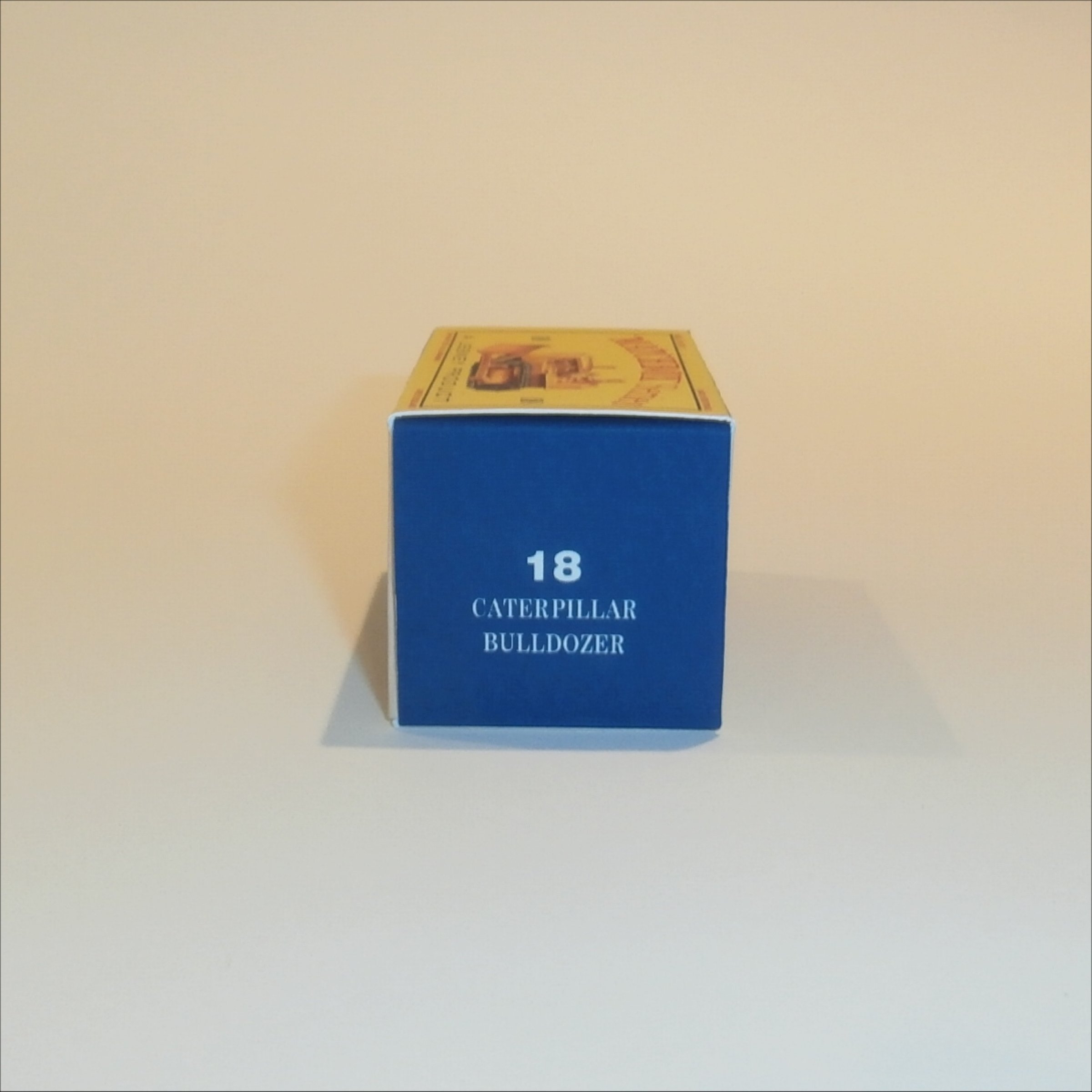An empty reproduction Matchbox Lesney 18c Caterpillar Bulldozer Empty D Style Repro Box.