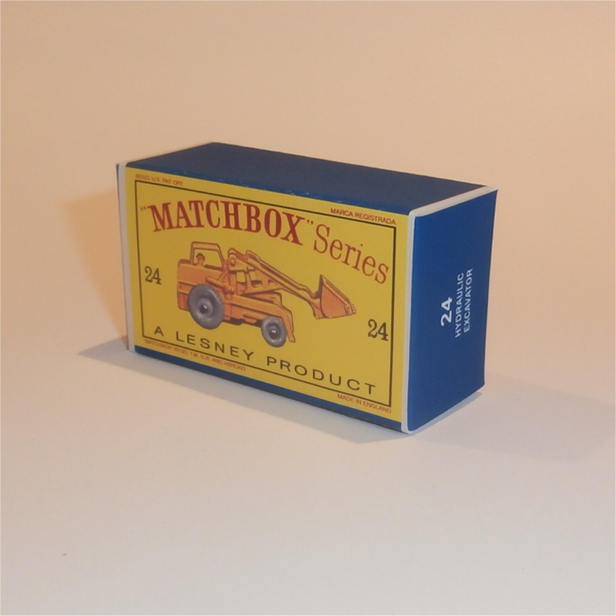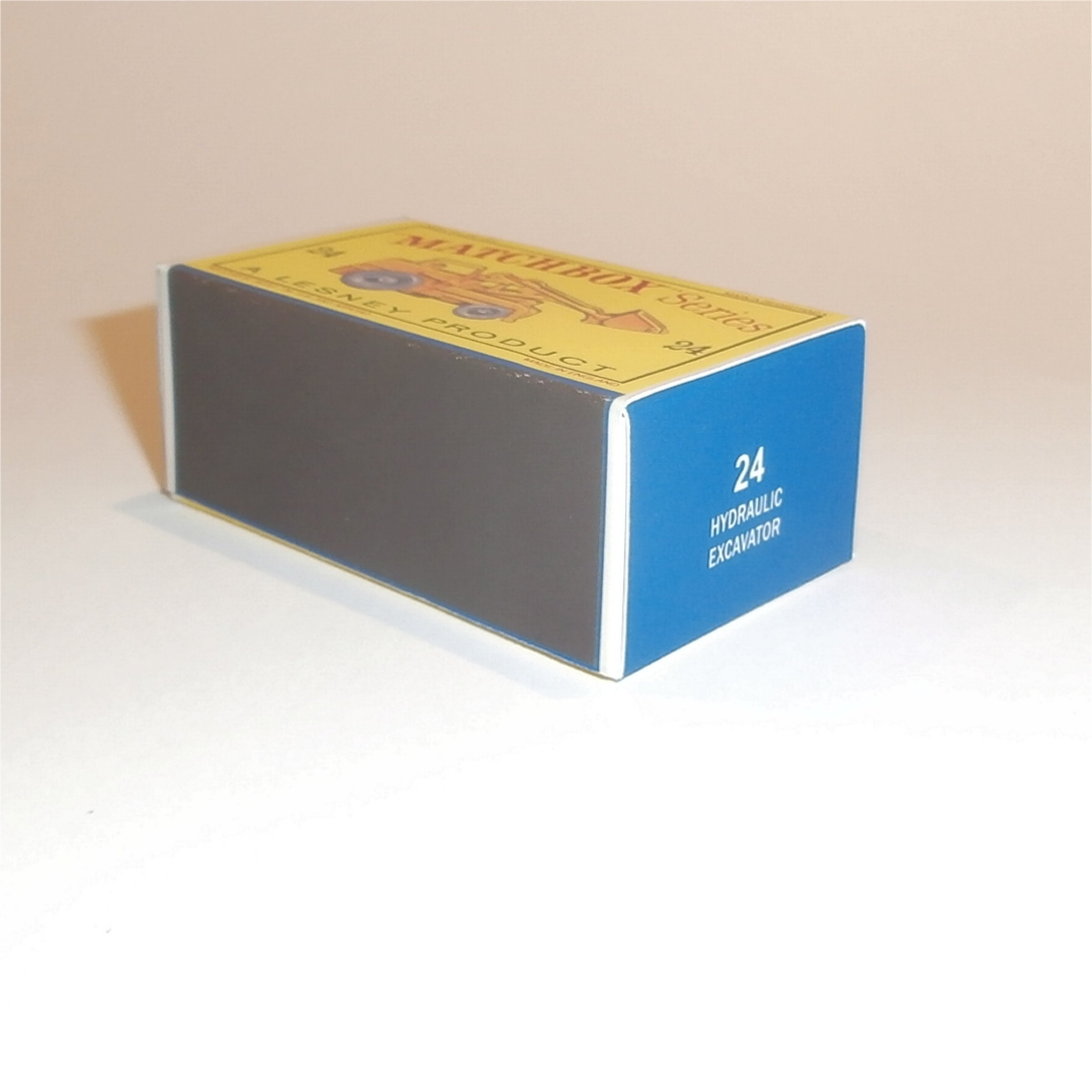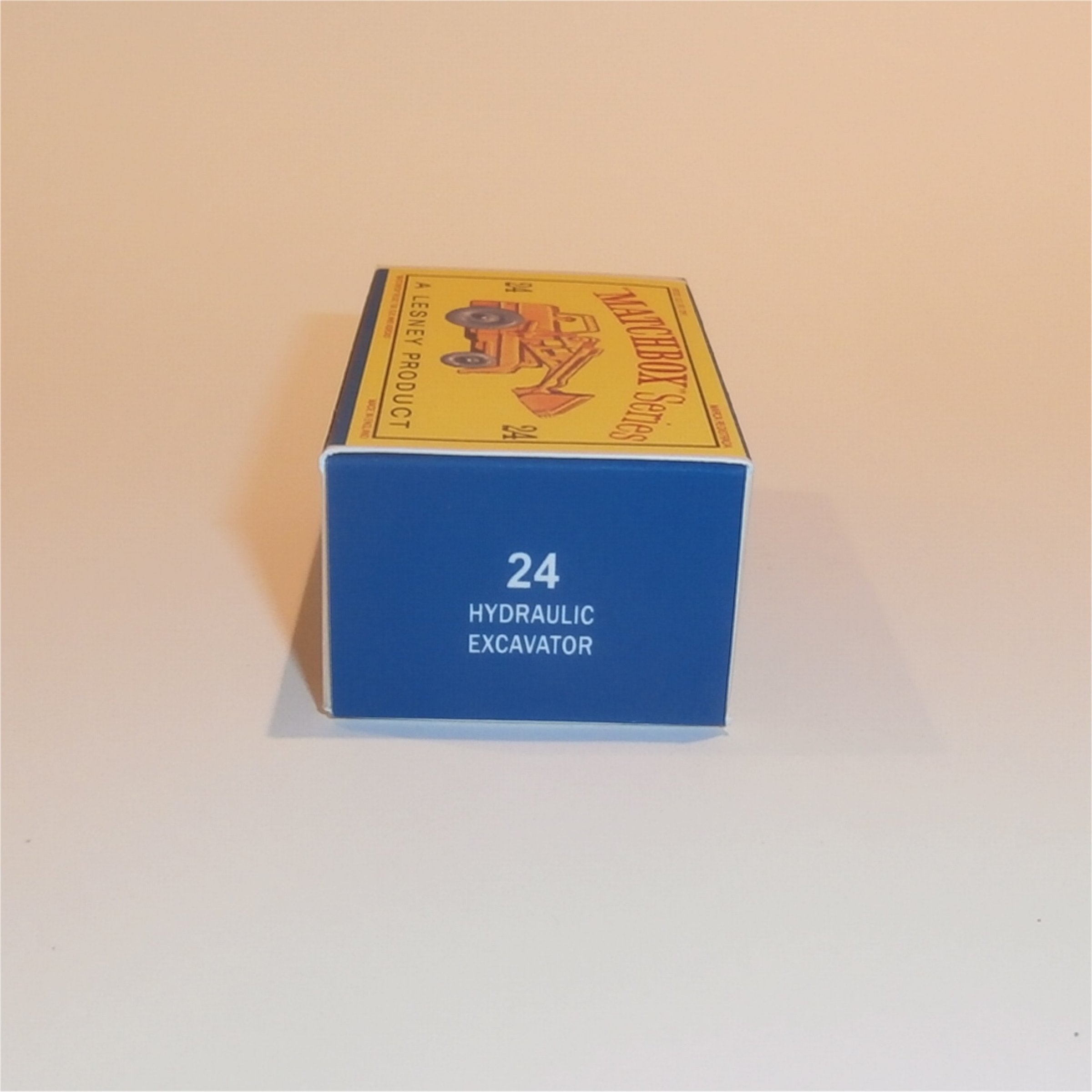 An empty reproduction Matchbox Lesney 24b Weatherill Hydraulic Excavator Empty D Style Repro Box.