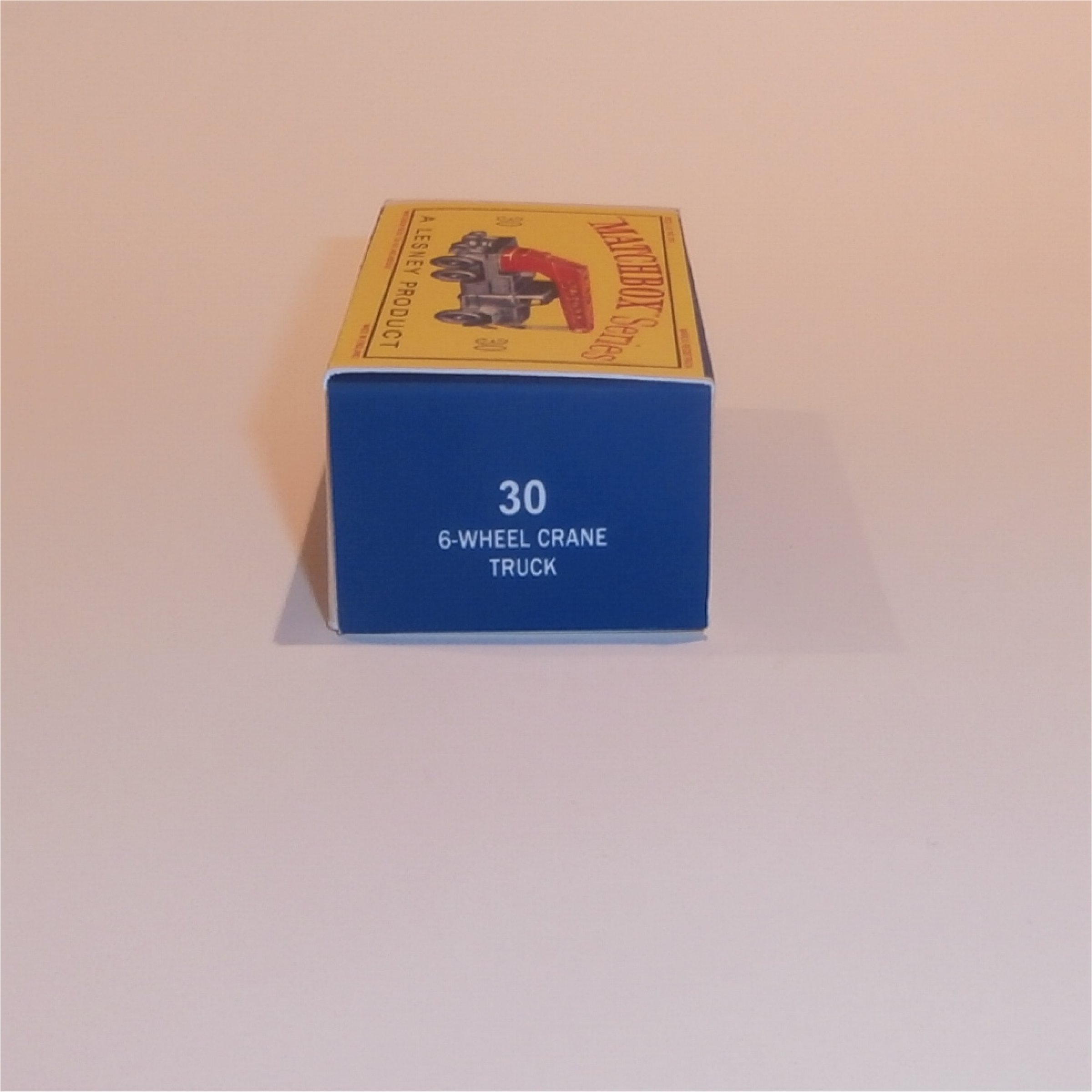 An empty reproduction Matchbox Lesney 30 b Magirus-Deutz 6-Wheel Crane Empty D Style Repro Box.