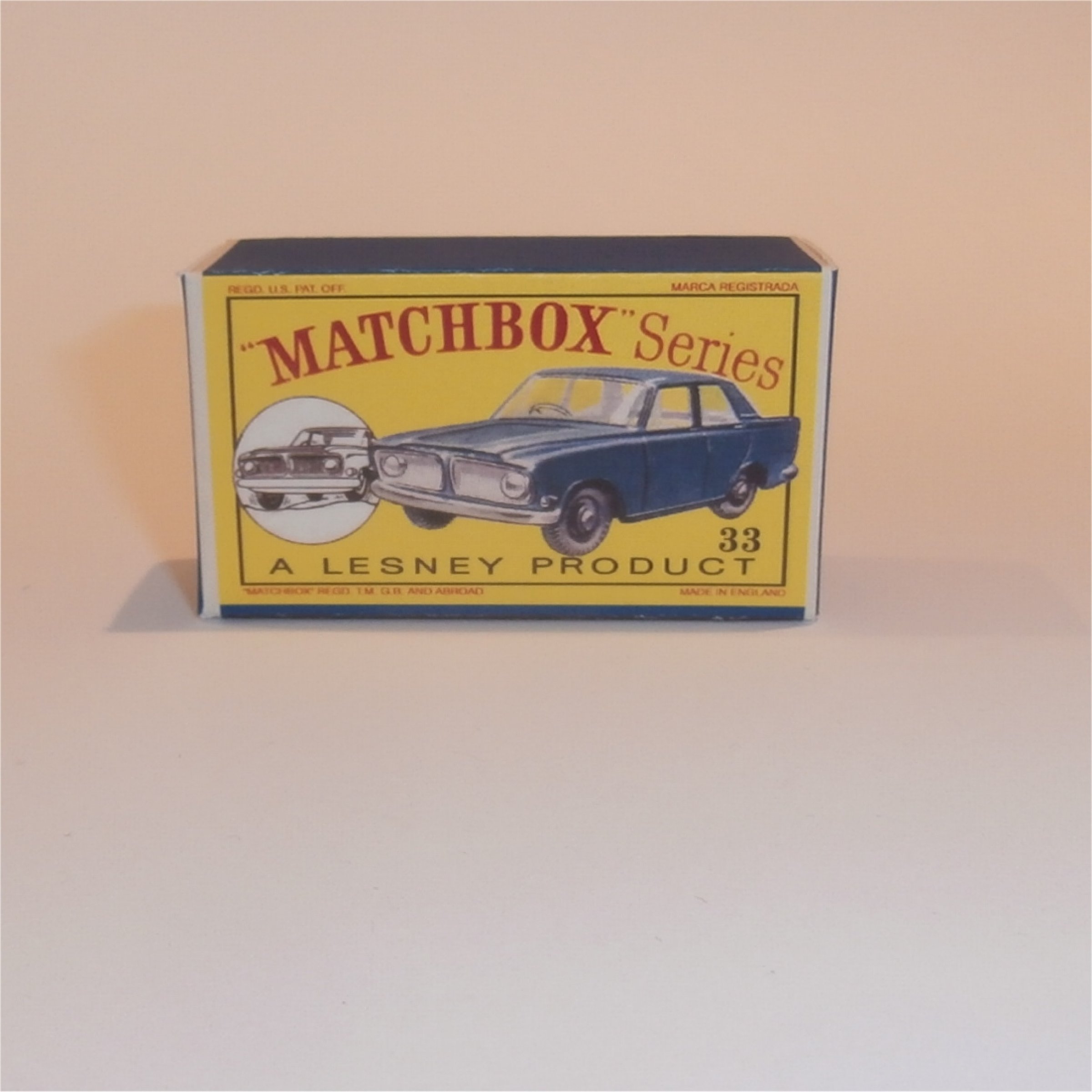 Matchbox Lesney 33 b2 Ford Zephyr III (Blue) Repro Box D style.