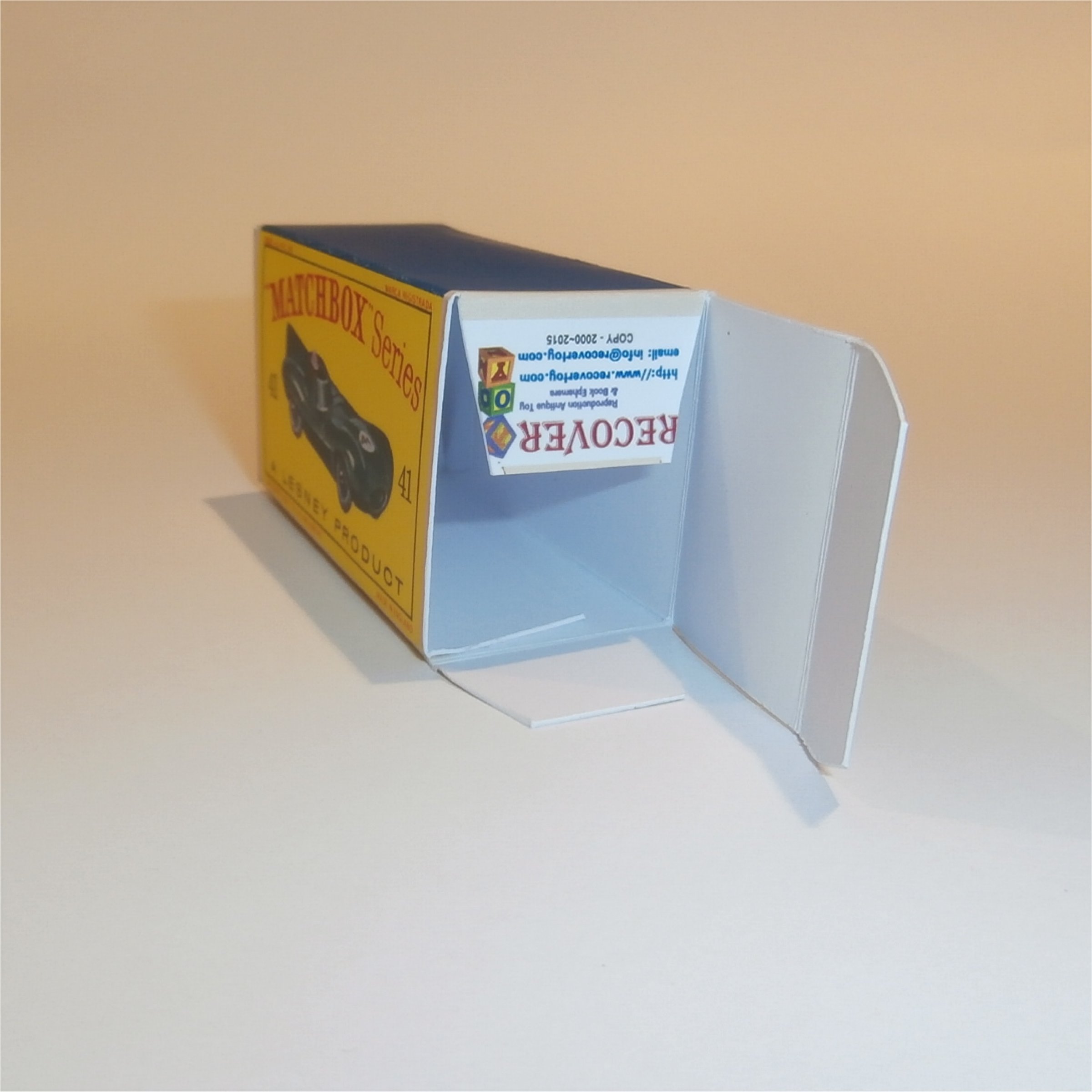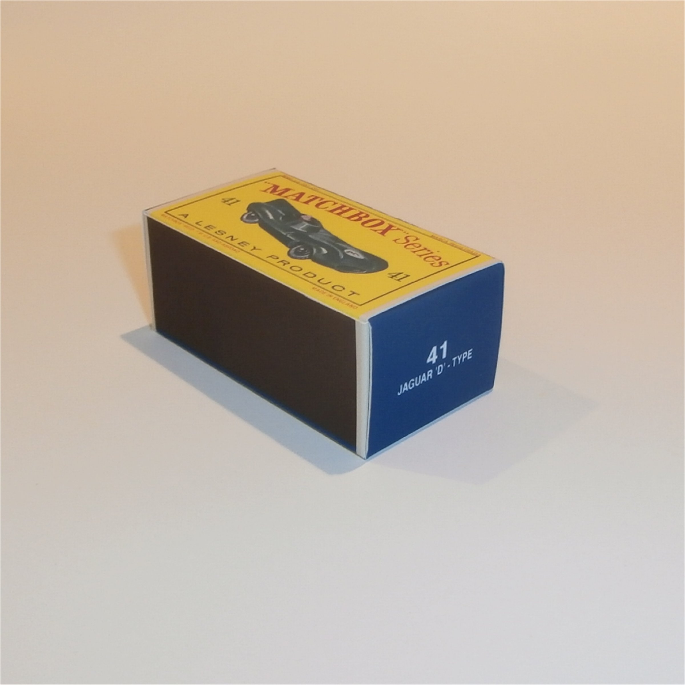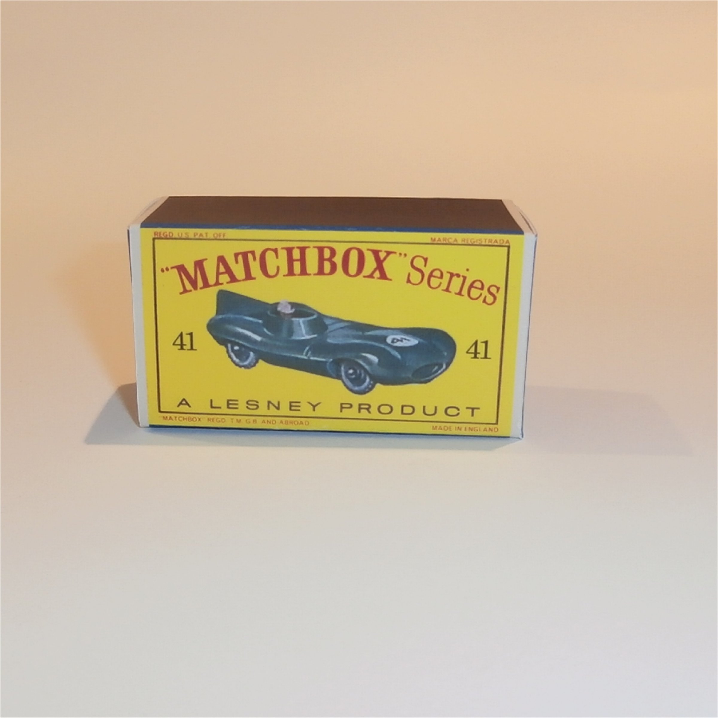 An empty reproduction Matchbox Lesney 41 b Jaguar D type Racing car Empty D Style Repro Box.