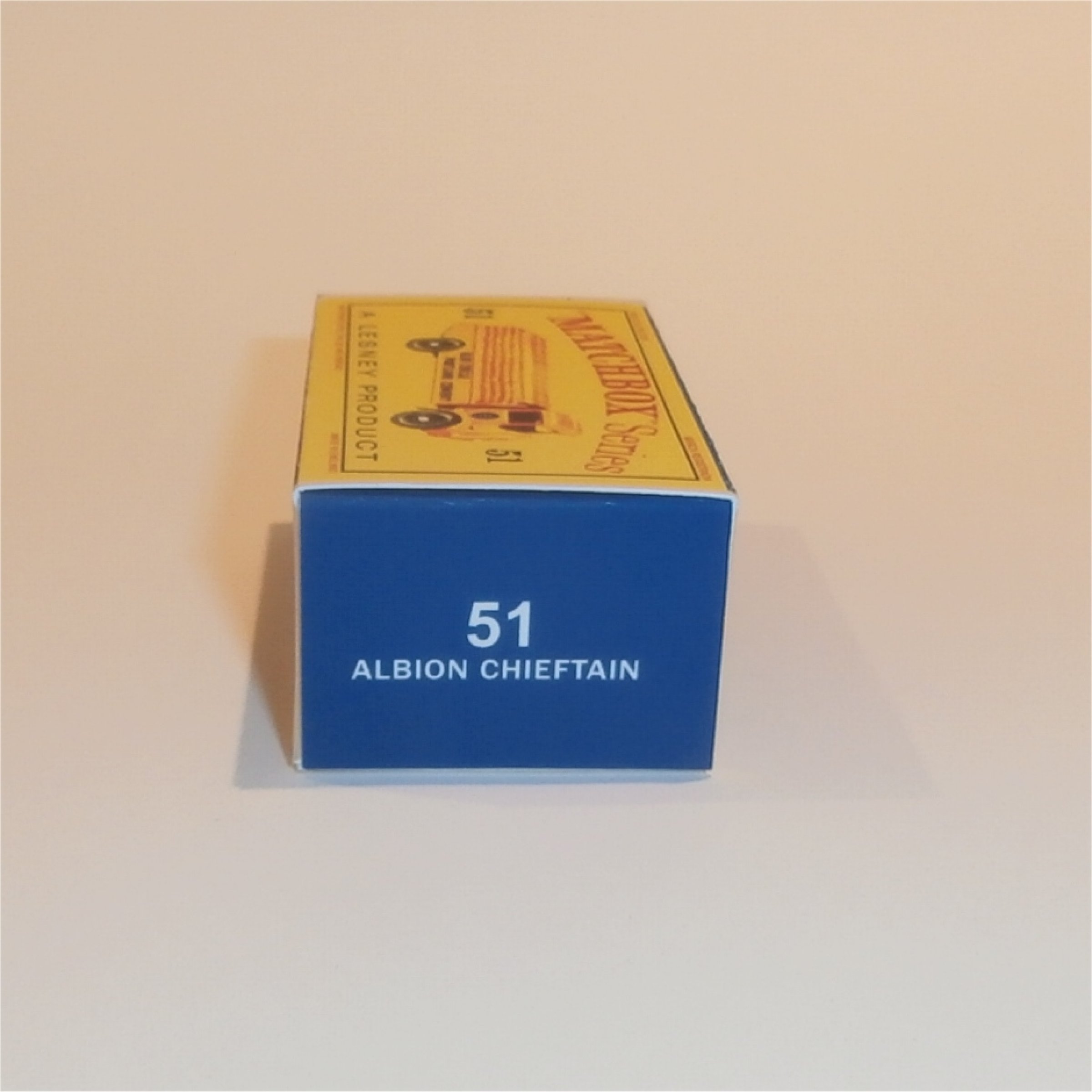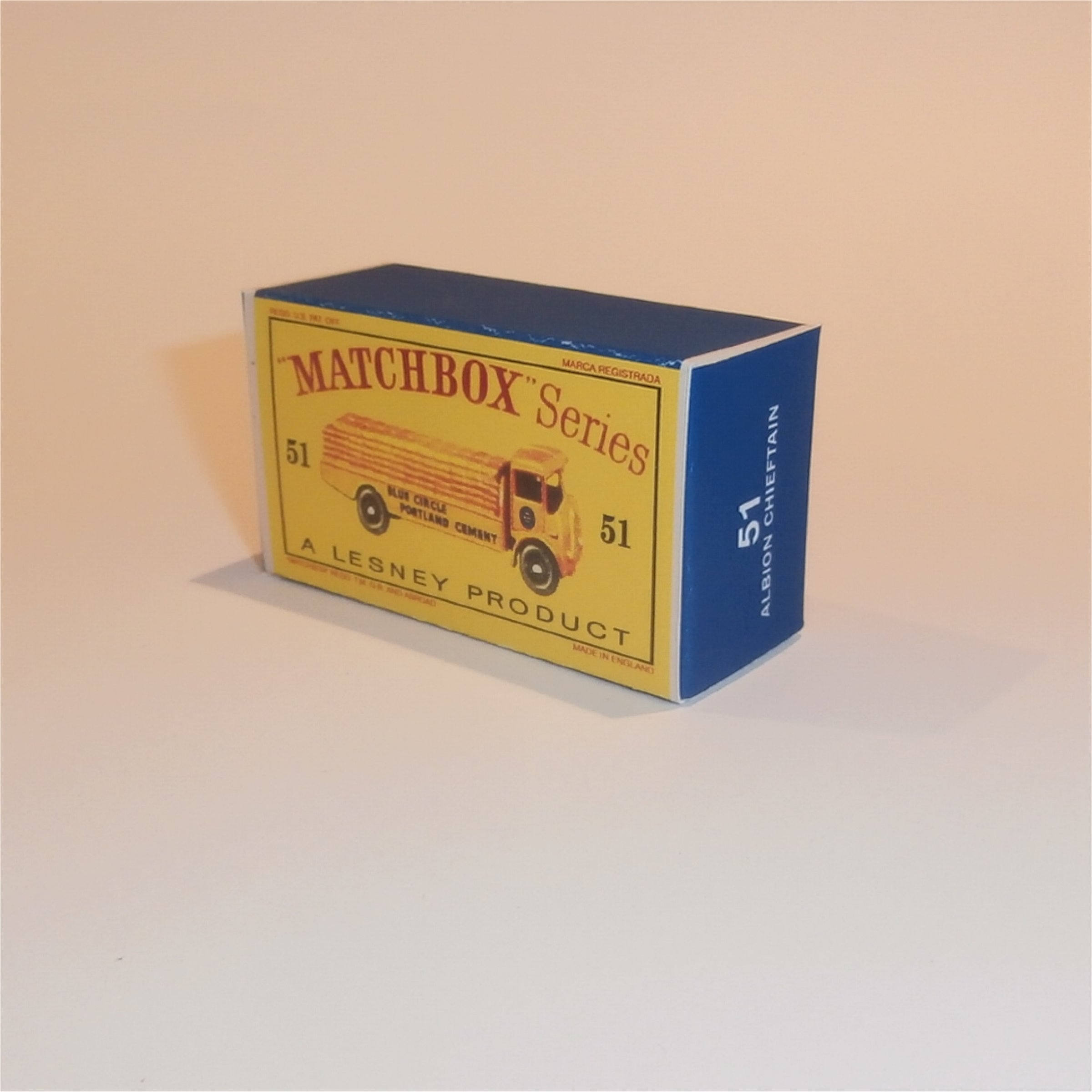 An empty reproduction Matchbox Lesney 51 a Albion Cement Truck Empty D Style Repro Box.