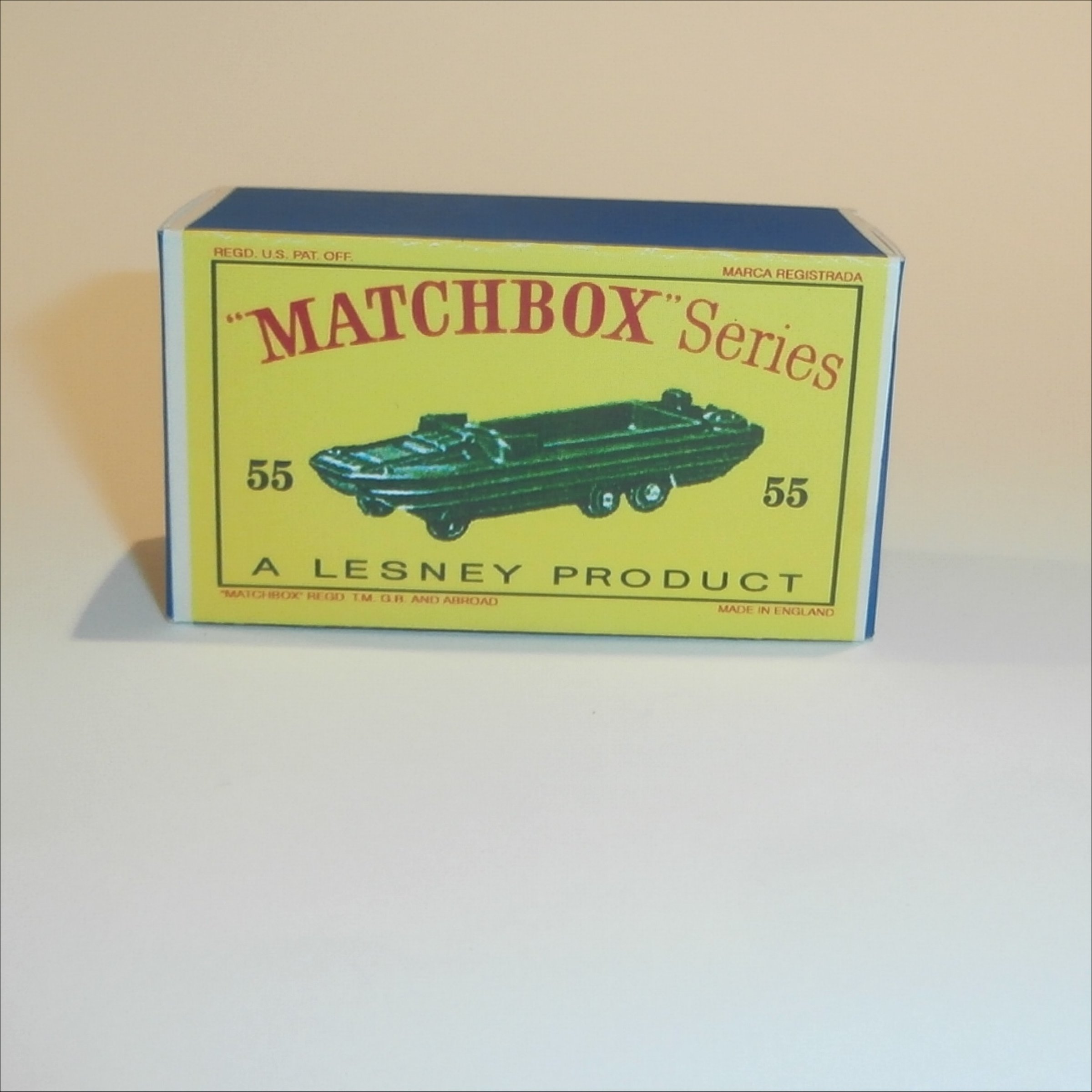 An empty reproduction Matchbox Lesney 55 a DUKW Military Amphibian Empty D Style Repro Box.