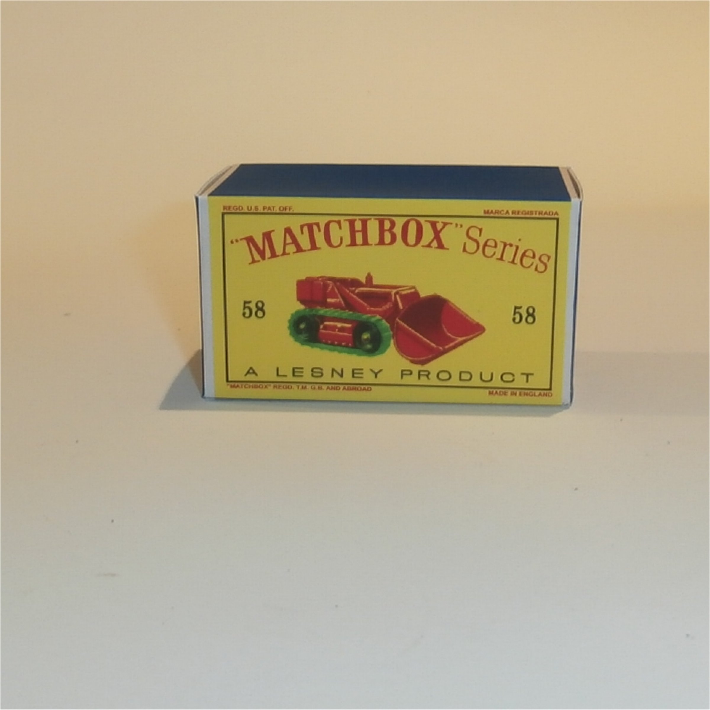 An empty reproduction Matchbox Lesney 58 b Drott Excavator Empty D Style Repro Box.