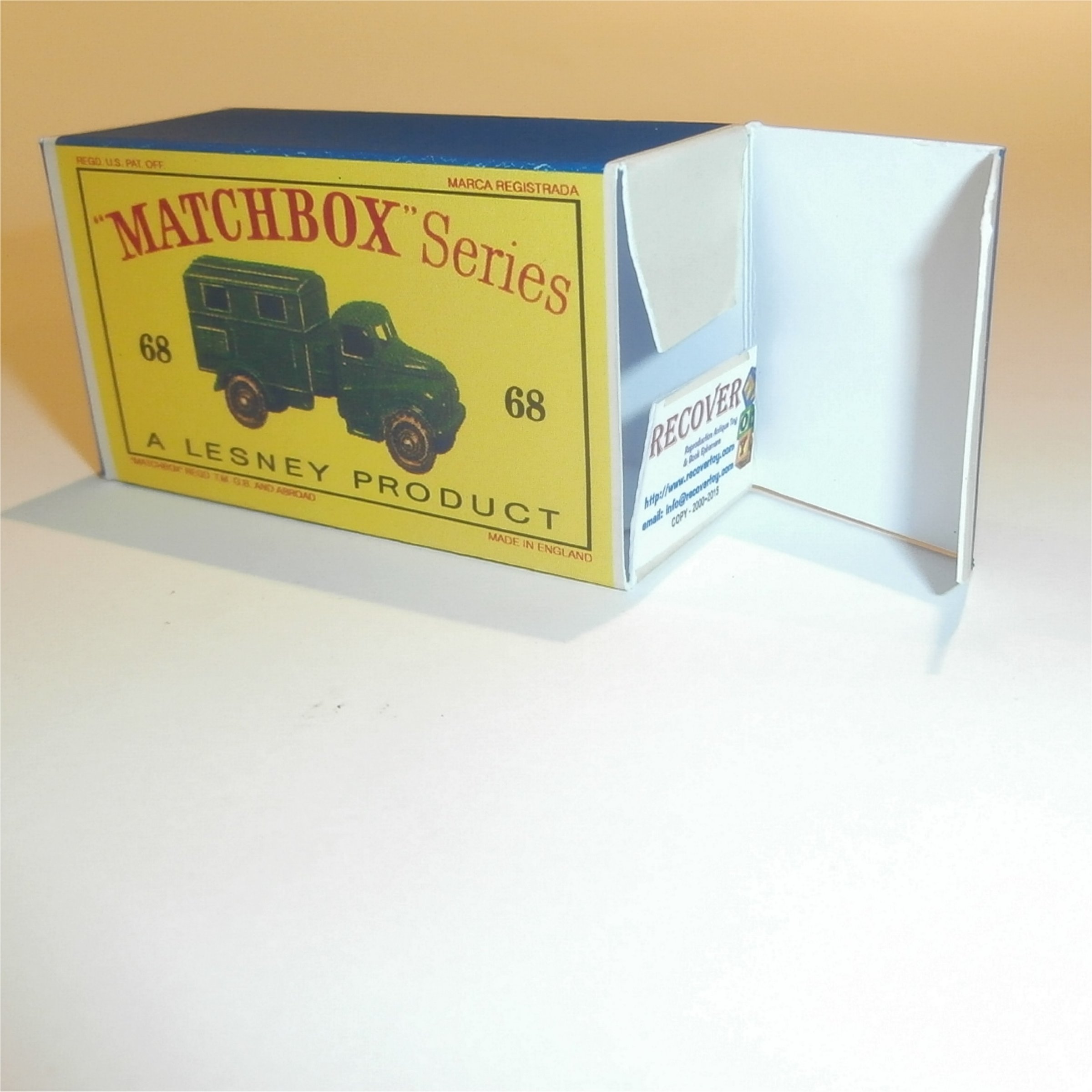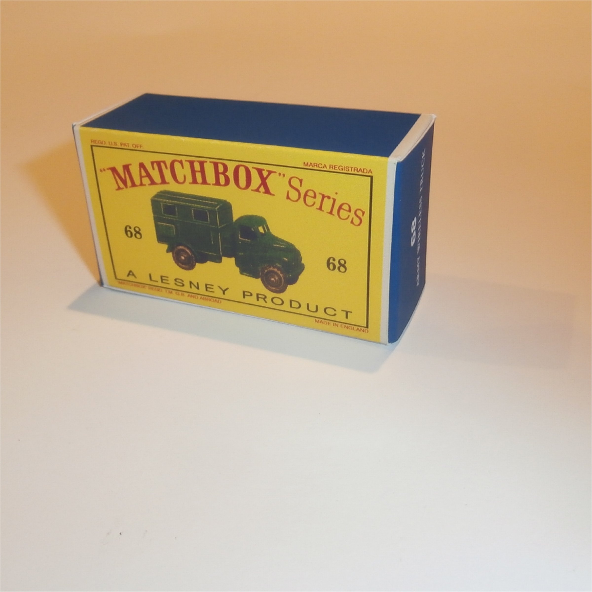 An empty reproduction Matchbox Lesney 68 a Austin Military Radio Van Empty D Style Repro Box.