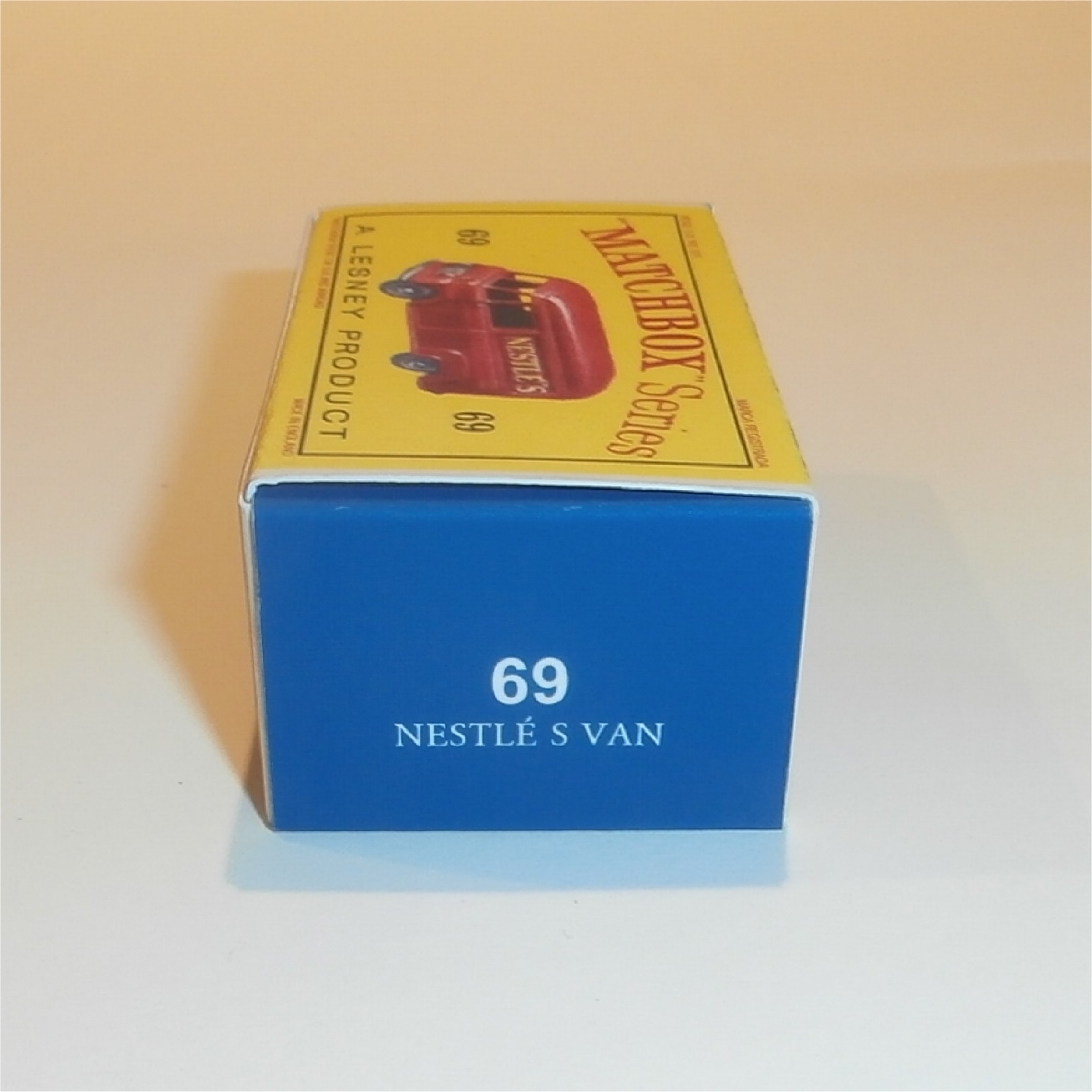 This Matchbox Lesney D style reproduction box is for the 69a Nestles Delivery Van.