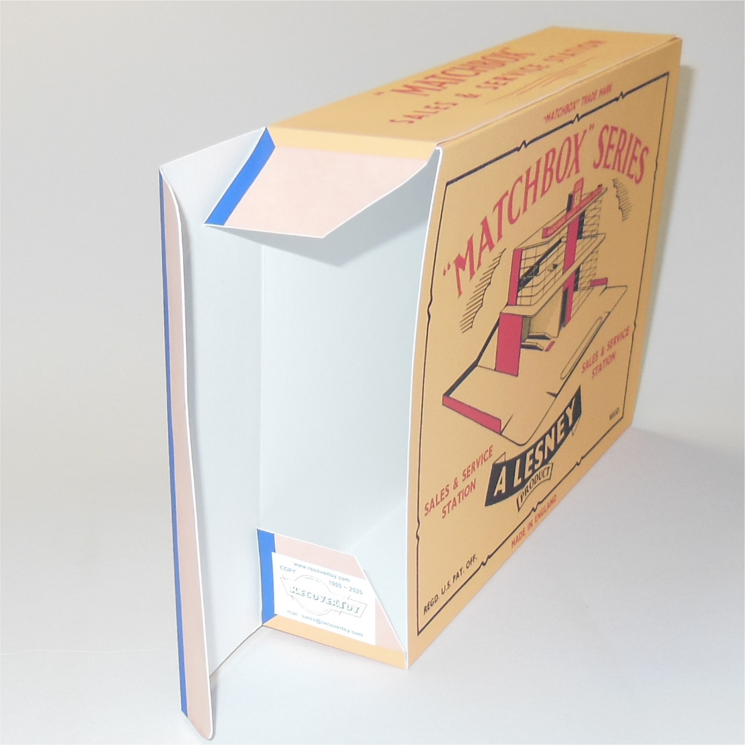 An empty reproduction Matchbox Lesney Accessory MG-1 Esso Garage Service Station C Style Repro Box.