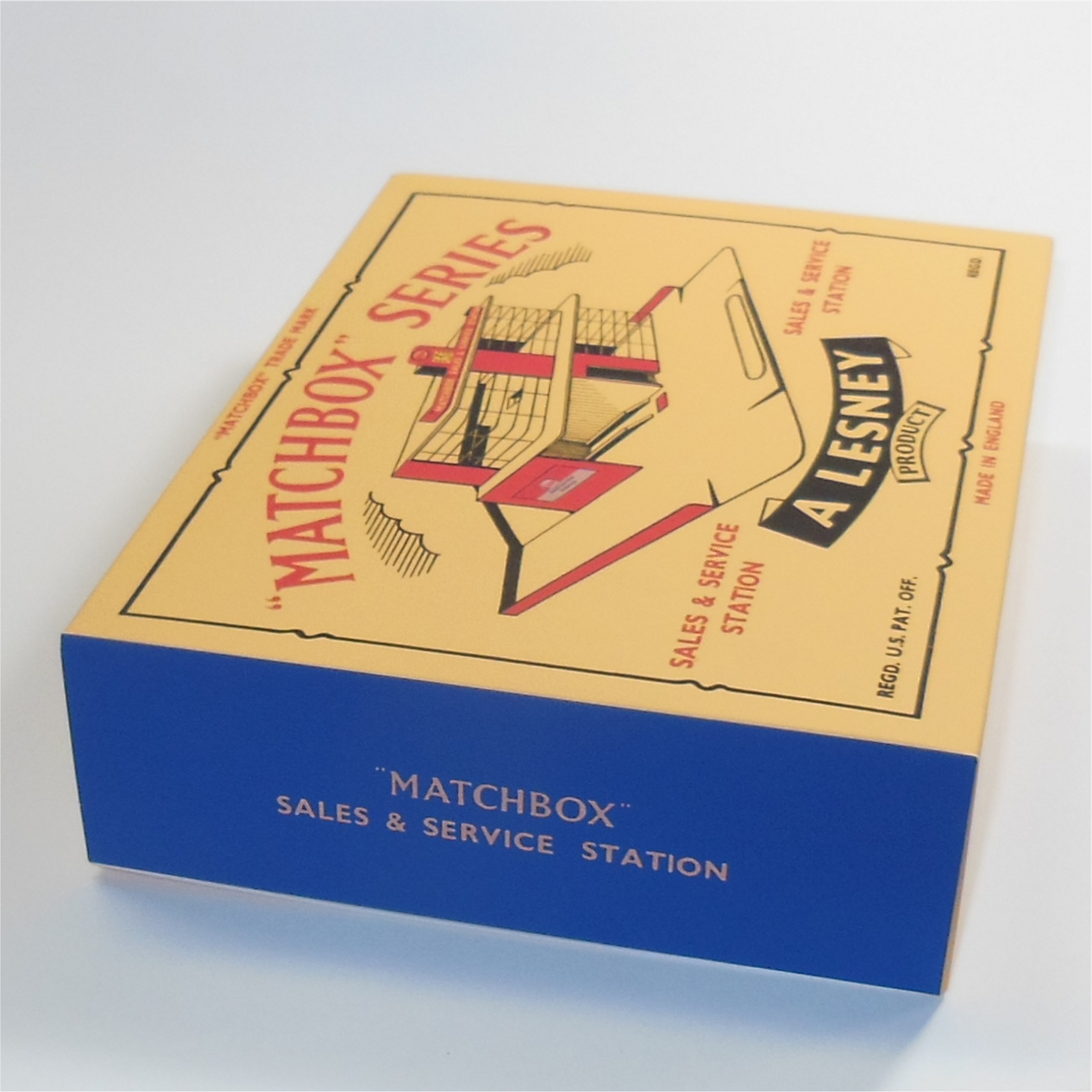 An empty reproduction Matchbox Lesney Accessory MG-1b2 Esso Garage Service Station C Style Repro Box.