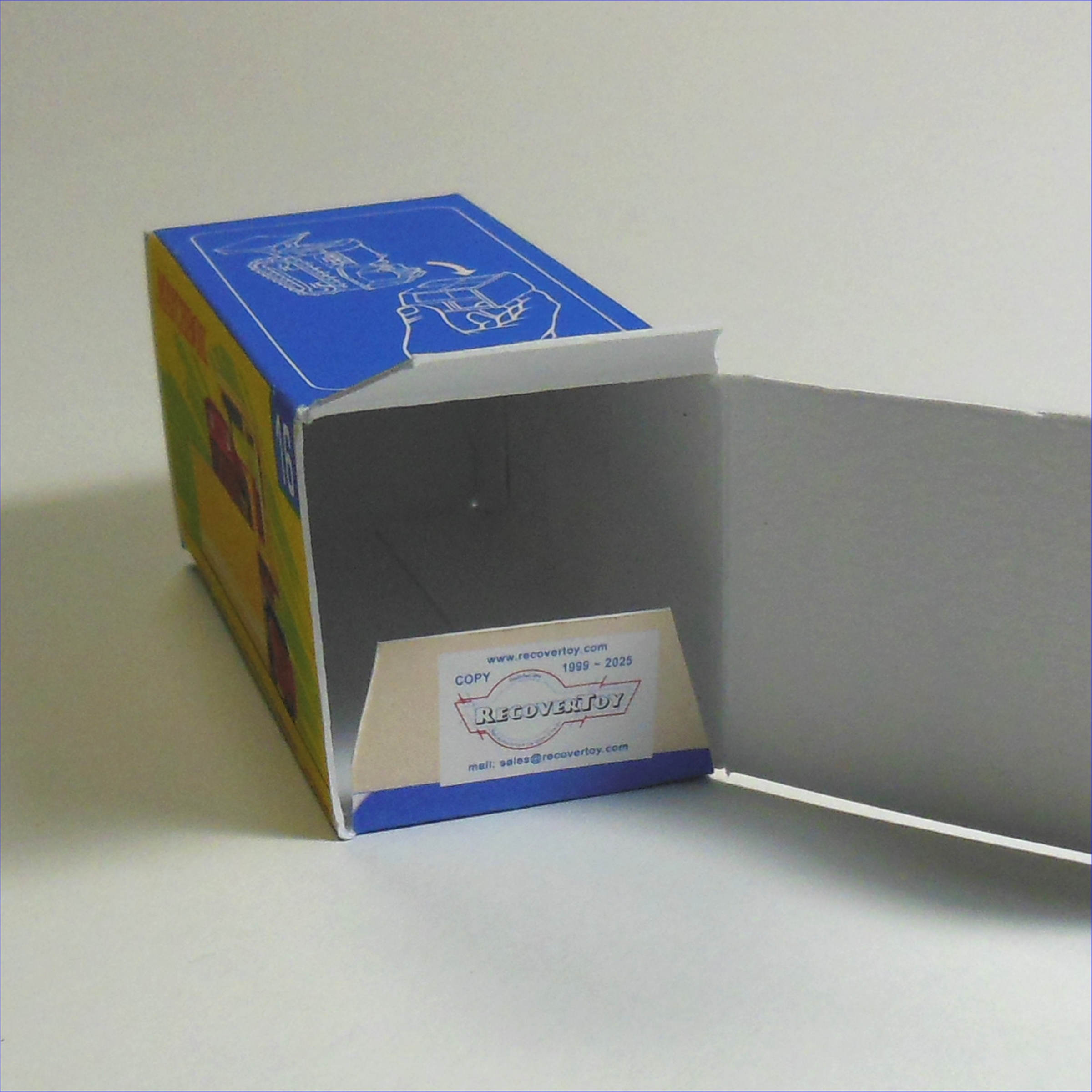 An empty reproduction replacement box for a Matchbox Lesney Superfast 16d Case Grader Tractor G Style Repro Box.